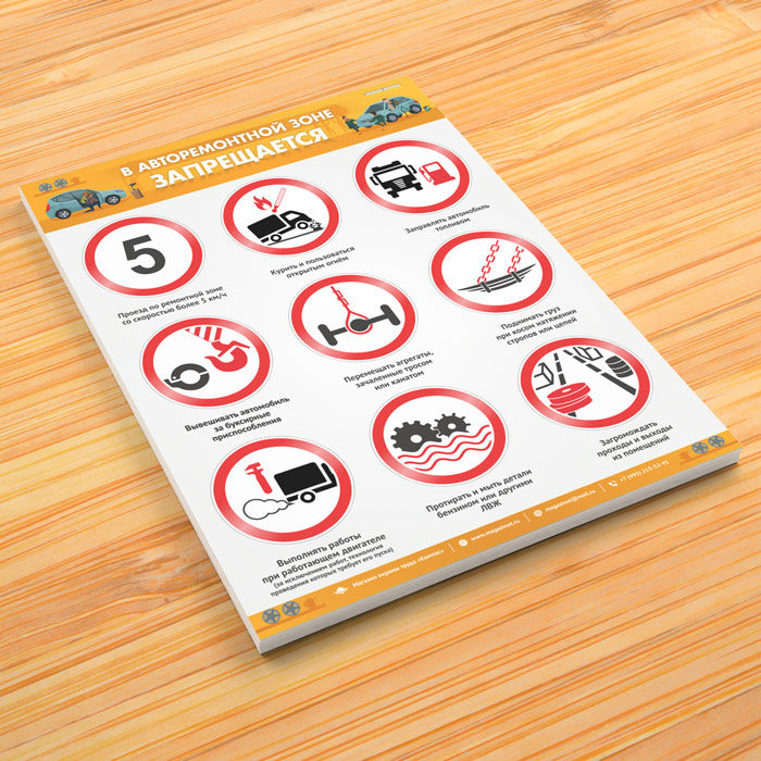 Плакат «В авторемонтной зоне запрещается» (М-104, ламинированная бумага, А2, 1 лист) в Санкт-Петербурге купить