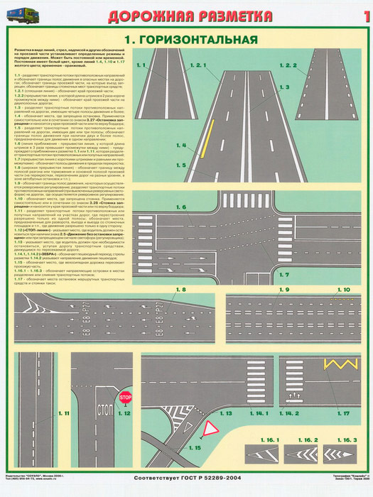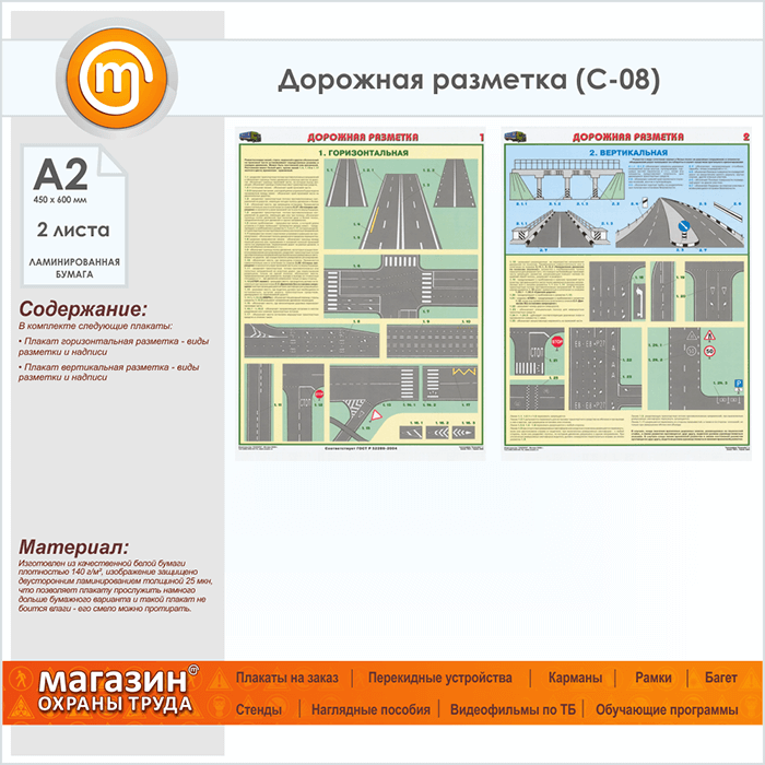 Плакаты «Дорожная разметка» (С-08, ламинированная бумага, А2, 2 листа) в Санкт-Петербурге купить