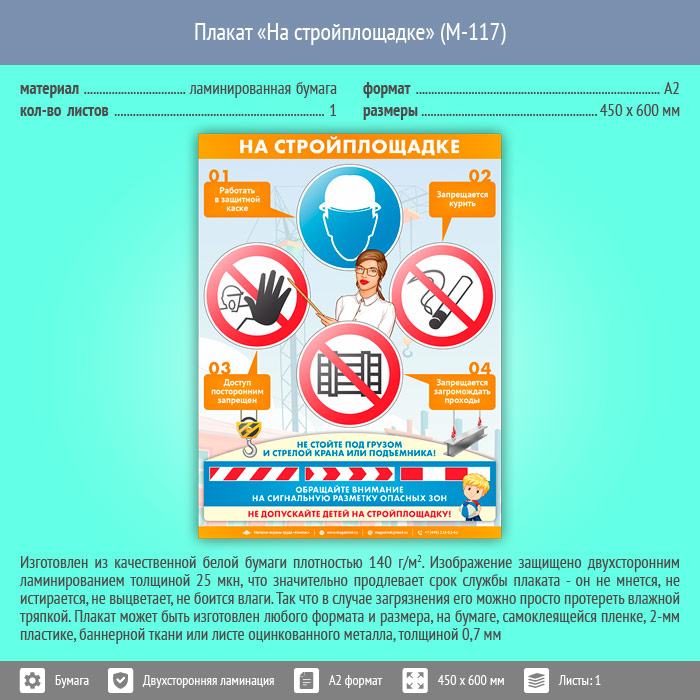 Плакат «На стройплощадке» (М-117, ламинированная бумага, А2, 1 лист) в Санкт-Петербурге купить