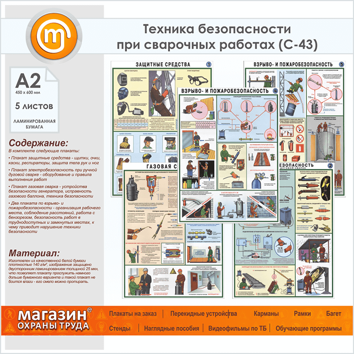 Плакаты «Техника безопасности при сварочных работах» (С-43, ламинированная бумага, А2, 5 листов) в Санкт-Петербурге купить