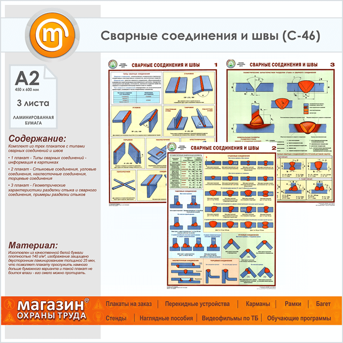 Плакаты «Сварные соединения и швы» (С-46, ламинированная бумага, А2, 3 листа) в Санкт-Петербурге купить