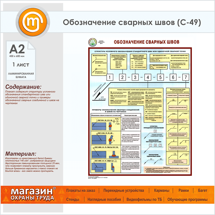 Плакат «Обозначение сварных швов» (С-49, ламинированная бумага, А2, 1 лист) в Санкт-Петербурге купить