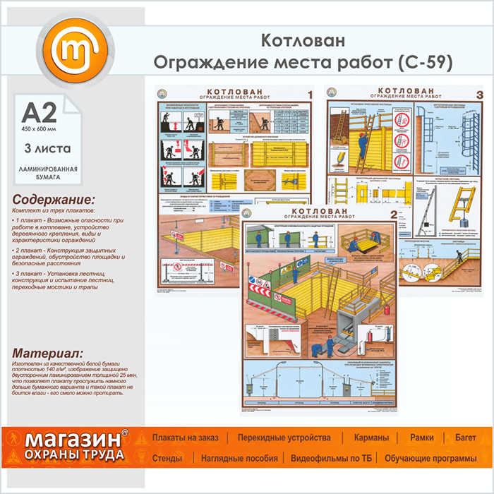Плакаты «Котлован. Ограждение места работ» (С-59, ламинированная бумага, А2, 3 листа) в Санкт-Петербурге купить