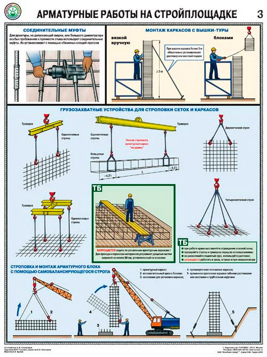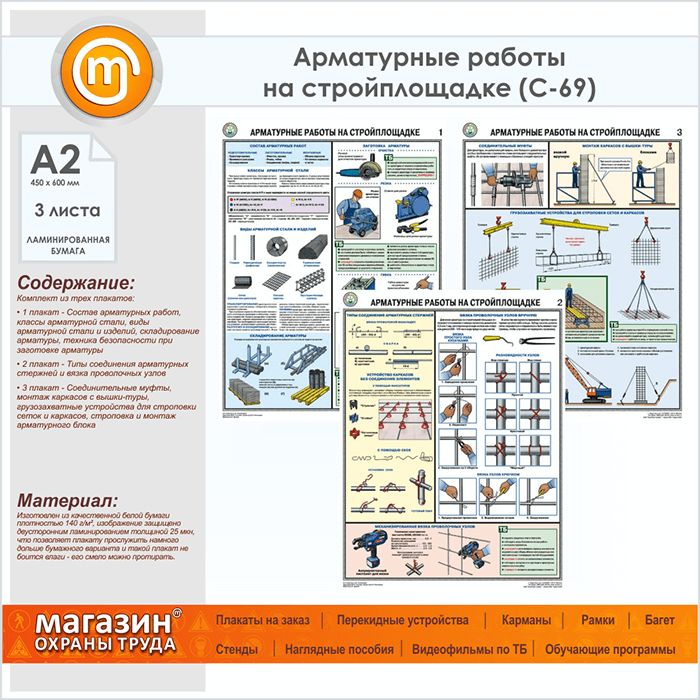 Плакаты «Арматурные работы на стройплощадке» (С-69, ламинированная бумага, А2, 3 листа) в Санкт-Петербурге купить
