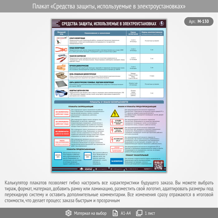 Плакат «Средства защиты, используемые в электроустановках» с QR (М-130, 1 лист) в Санкт-Петербурге купить
