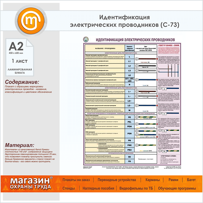 Плакат «Идентификация электрических проводников» (С-73, ламинированная бумага, А2, 1 лист) в Санкт-Петербурге купить