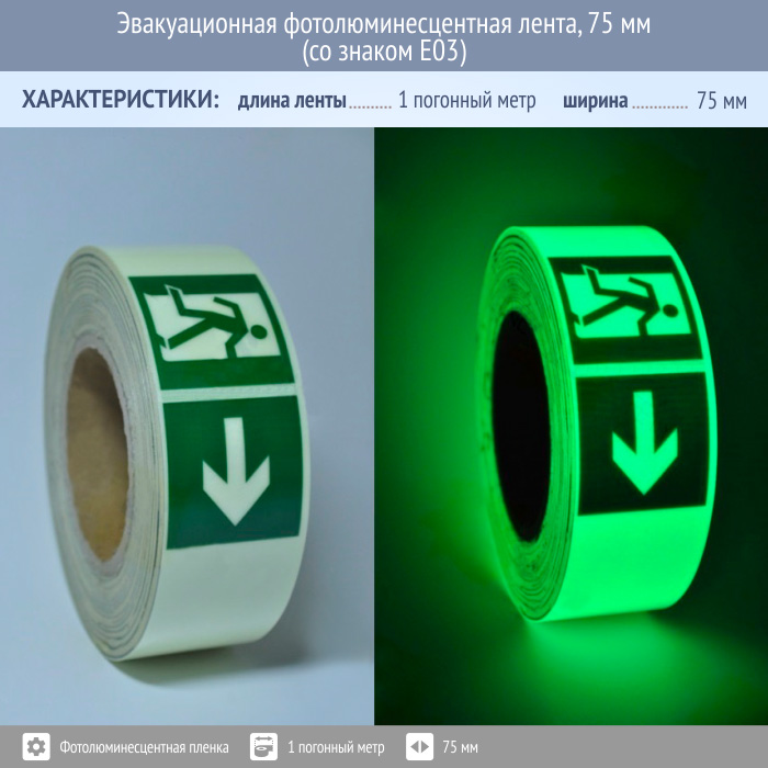 Эвакуационная фотолюминесцентная лента, 75 мм (со знаком E03) в Санкт-Петербурге купить