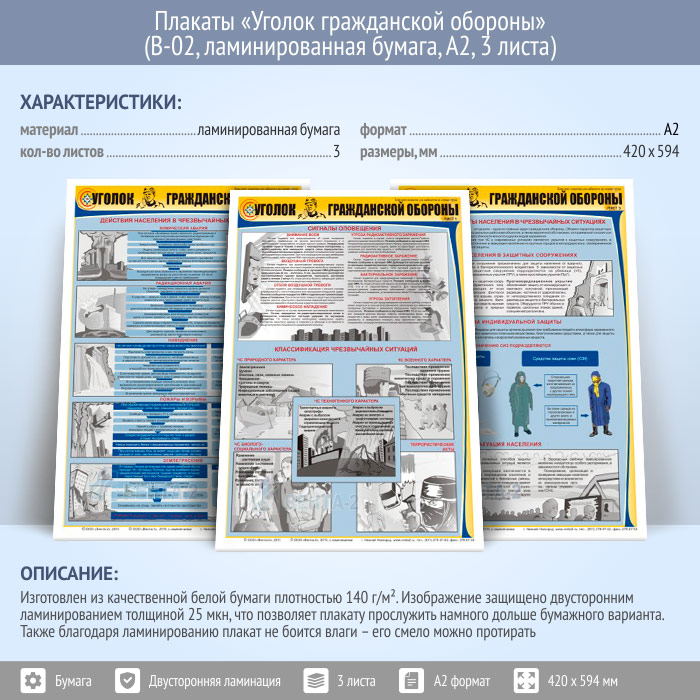 Плакаты «Уголок гражданской обороны» (В-02, ламинированная бумага, А2, 3 листа) в Санкт-Петербурге купить