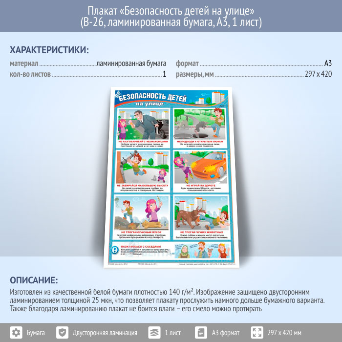 Плакат «Безопасность детей на улице» (В-26, ламинированная бумага, А3, 1 лист) в Санкт-Петербурге купить