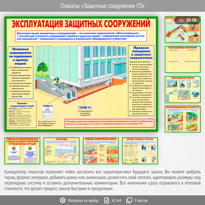 Плакаты «Защитные сооружения ГО» (ВЗ-08, 9 листов) в Санкт-Петербурге купить