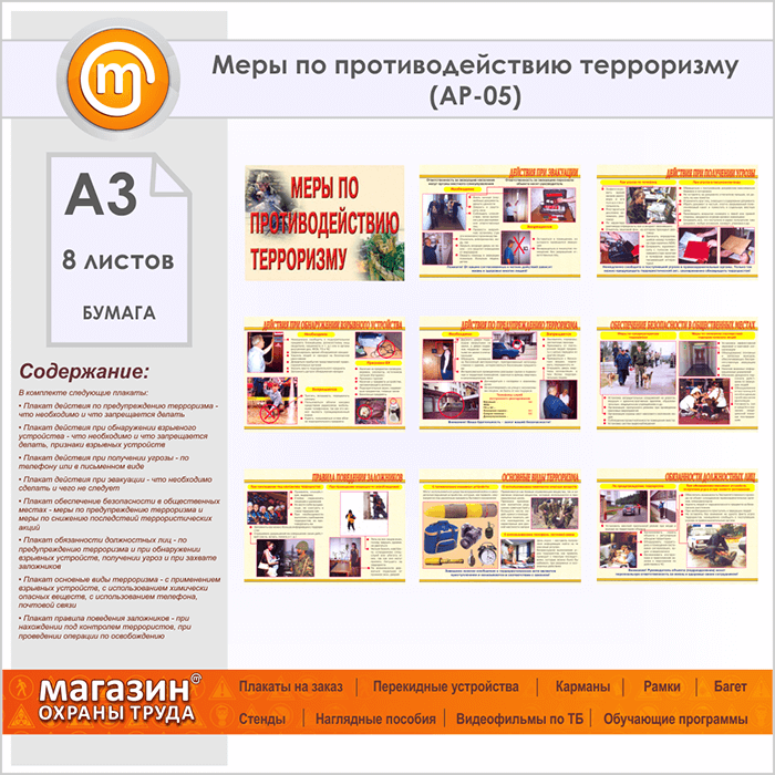 Плакаты «Меры по противодействию терроризму» (АР-05, бумага, А3, 8 листов) в Санкт-Петербурге купить