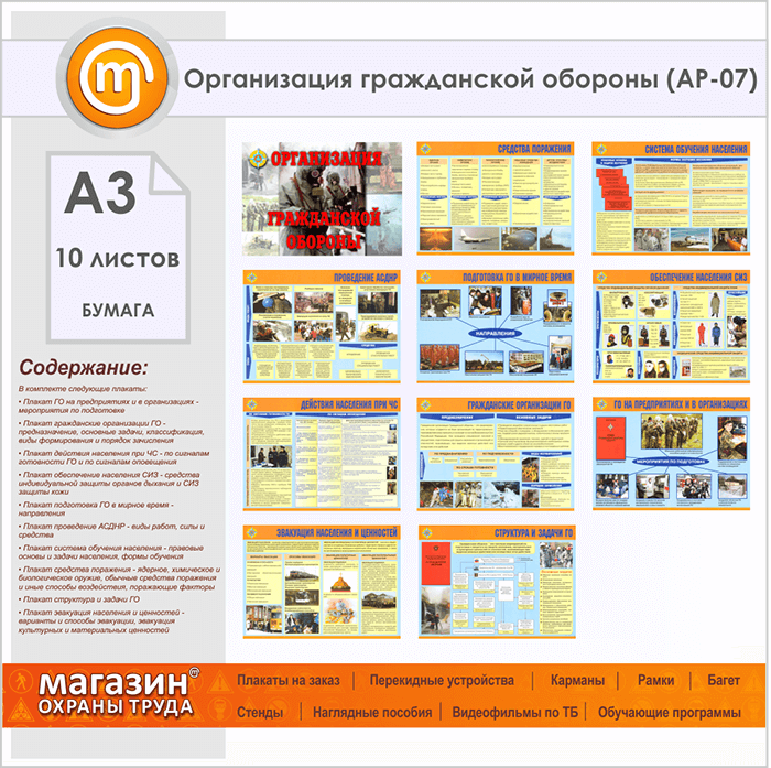 Плакаты «Организация гражданской обороны» (АР-07, бумага, А3, 10 листов) в Санкт-Петербурге купить