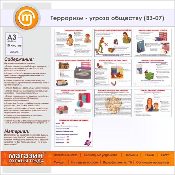 Плакаты «Терроризм - угроза обществу» (ВЗ-07, бумага, А3, 10 листов) в Санкт-Петербурге купить