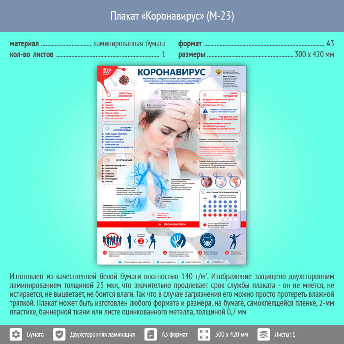 Плакат «Коронавирус» (М-23, ламинированная бумага, А3, 1 лист) в Санкт-Петербурге купить