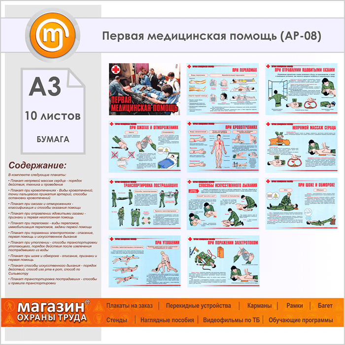 Плакаты «Первая медицинская помощь» (АР-08, бумага, А3, 10 листов) в Санкт-Петербурге купить