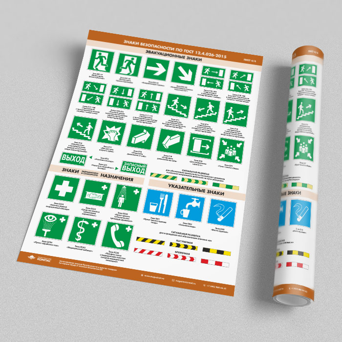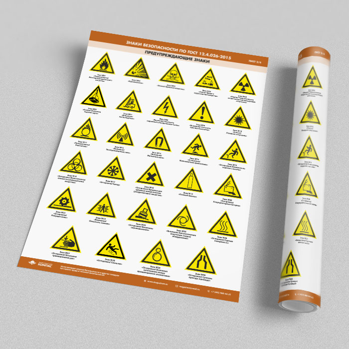 Плакаты «Знаки безопасности по ГОСТ 12.4.026-2015» (М-21, ламинированная бумага, А2, 4 листа) в Санкт-Петербурге купить