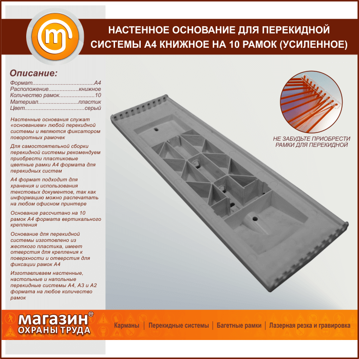 Настенное основание для перекидной системы А4 книжное на 10 рамок (усиленное) в Санкт-Петербурге купить