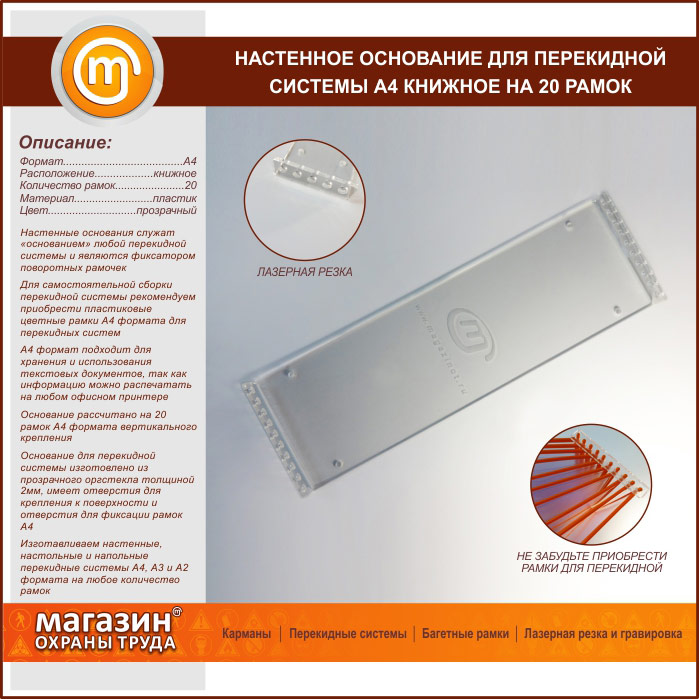 Настенное основание для перекидной системы А4 книжное на 20 рамок (оргстекло) в Санкт-Петербурге купить
