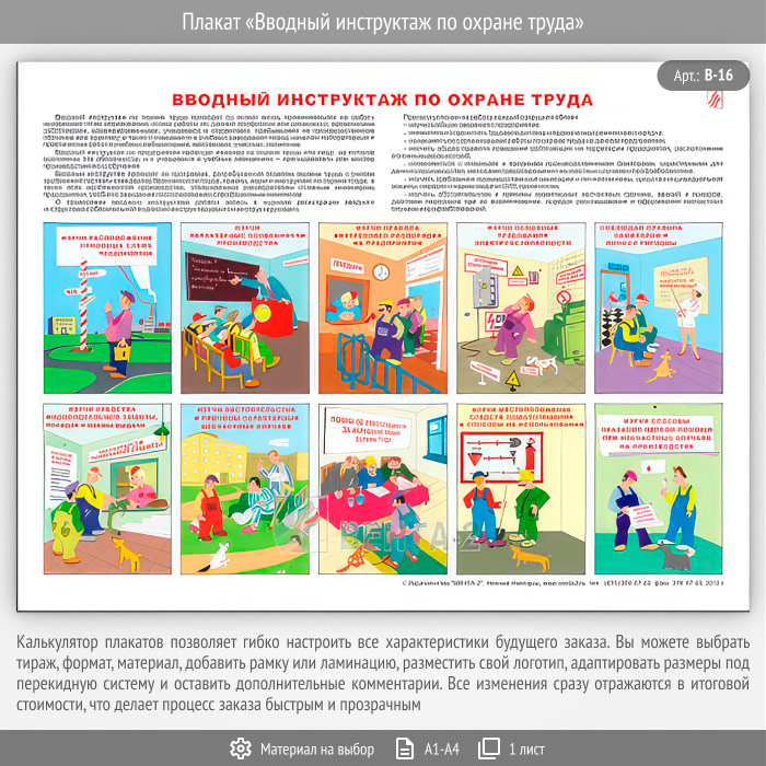 Плакат «Вводный инструктаж по охране труда» (В-16, ламинир. бумага, А2, 1 лист)