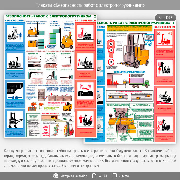 Плакаты «Безопасность работ с электропогрузчиками» (С-28, 2 листа)
