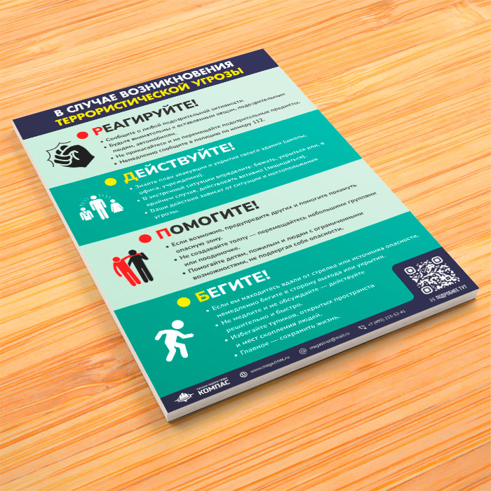 Плакат «В случае возникновения террористической угрозы» (М-109, ламинированная бумага, А3, 1 лист) в Санкт-Петербурге купить