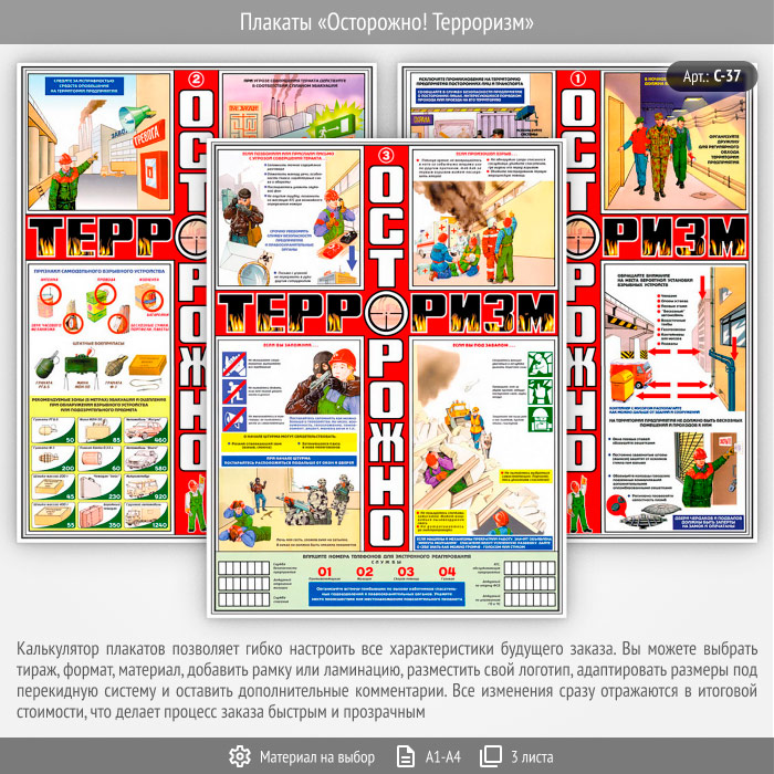 Комплект плакатов «Осторожно! Терроризм» из 3 листов – достойное качество и полезная информация по приемлемой цене