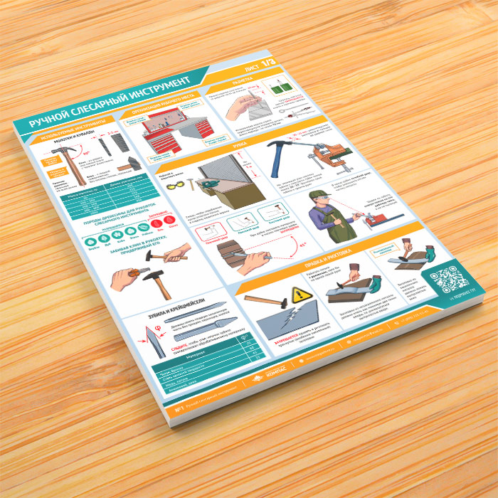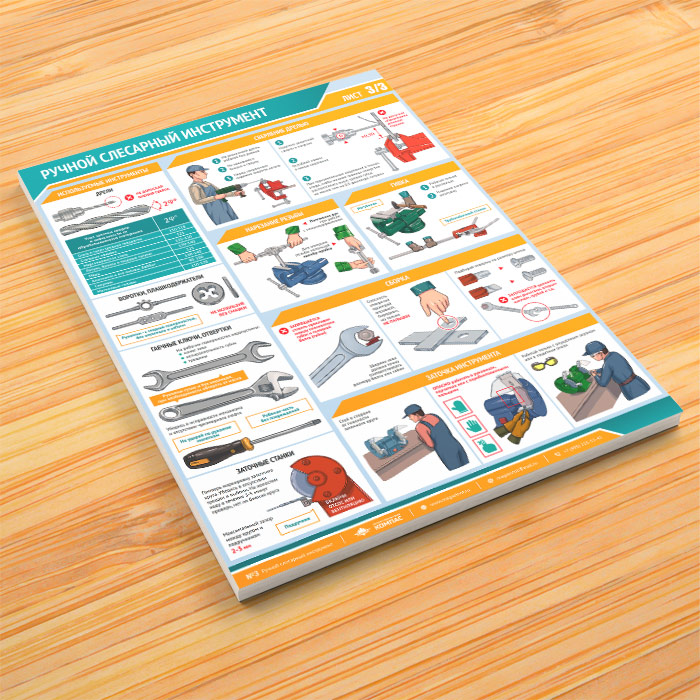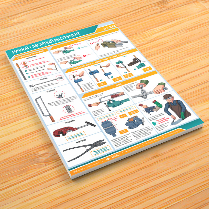 Комплект плакатов «Ручной слесарный инструмент» из 3 листов яркое и привлекающее к себе внимание напоминание о необходимости соблюдения правил безопасности