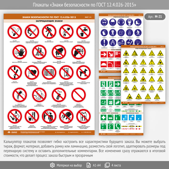 Плакаты «Знаки безопасности по ГОСТ 12.4.026-2015» (М-21, 4 листа)Плакаты «Знаки безопасности по ГОСТ 12.4.026-2015» (М-21, 4 листа)Плакаты «Знаки безопасности по ГОСТ 12.4.026-2015» (М-21, 4 листа)Плакаты «Знаки безопасности по ГОСТ 12.4.026-2015» (М-21, 4 листа)