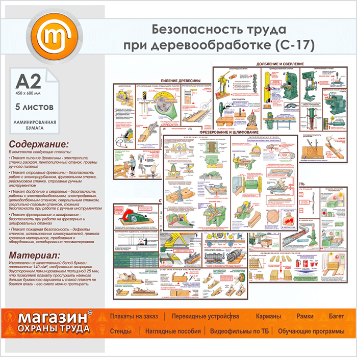 Плакаты «Безопасность труда при деревообработке» (С-17, ламинированная бумага, А2, 5 листов) в Санкт-Петербурге купить