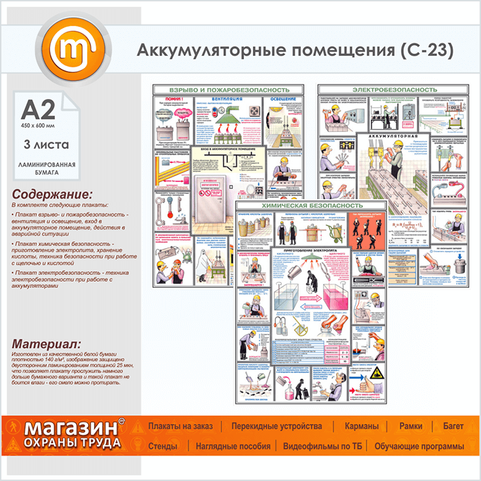Плакаты «Аккумуляторные помещения» (С-23, ламинированная бумага, А2, 3 листа) в Санкт-Петербурге купить