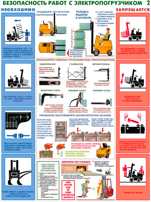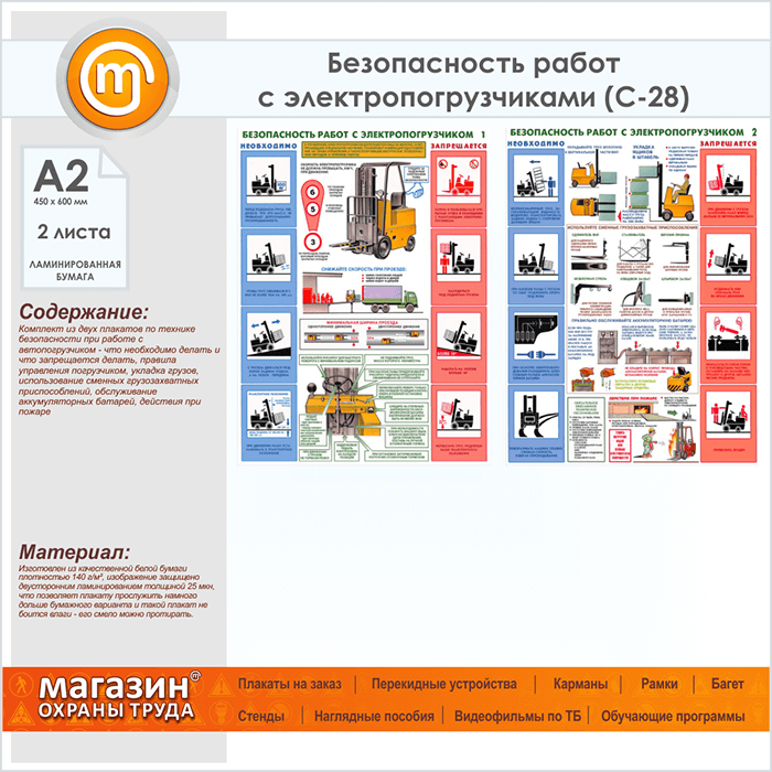 Плакаты «Безопасность работ с электропогрузчиками» (С-28, ламинированная бумага, А2, 2 листа) в Санкт-Петербурге купить