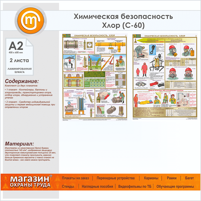 Плакаты «Химическая безопасность. Хлор» (С-60, ламинированная бумага, А2, 2 листа) в Санкт-Петербурге купить