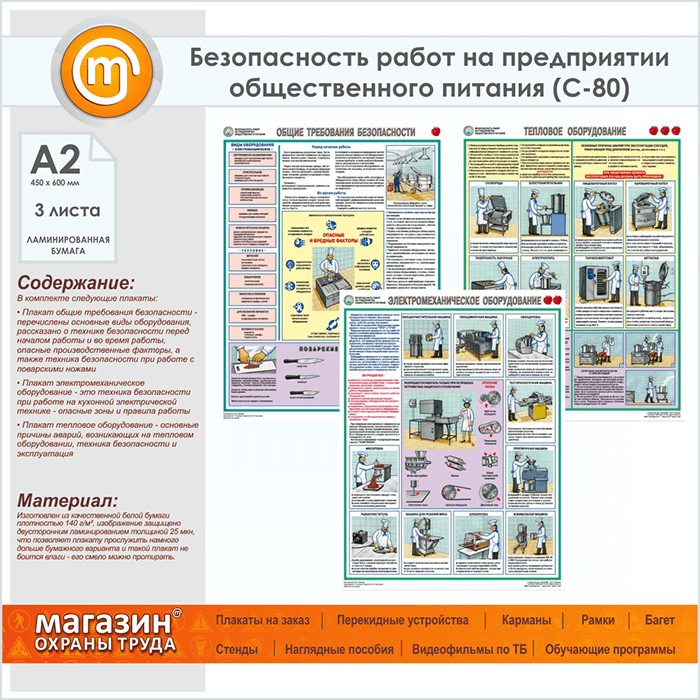 Плакат « Правила охраны труда на предприятии общественного питания» (С-80, ламинированная бумага, А2, 3 листа) в Санкт-Петербурге купить