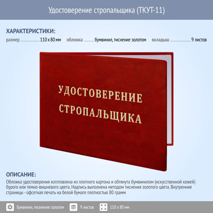 Бланк удостоверения стропальщика (ТКУТ-11) в Санкт-Петербурге купить
