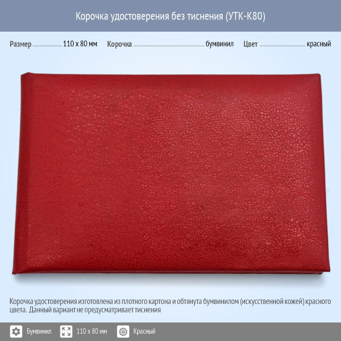 Бланк удостоверения без тиснения, красная, 110 x 80 мм (УТК-К80) в Санкт-Петербурге купить