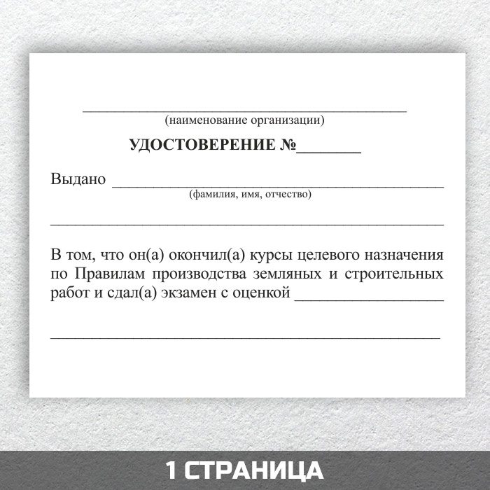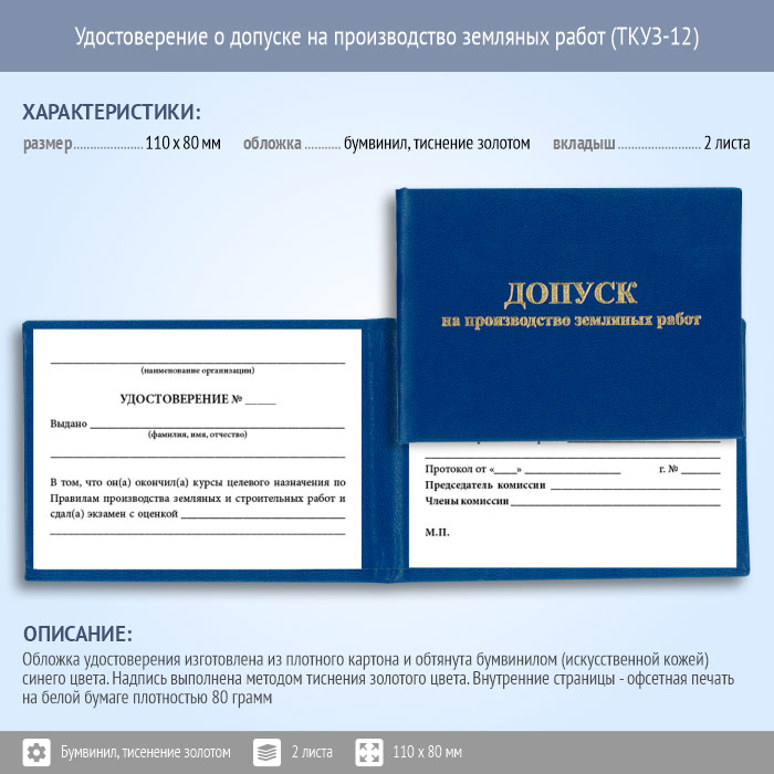 Бланк удостоверения о допуске на производство земляных работ (ТКУЗ-12) в Санкт-Петербурге купить