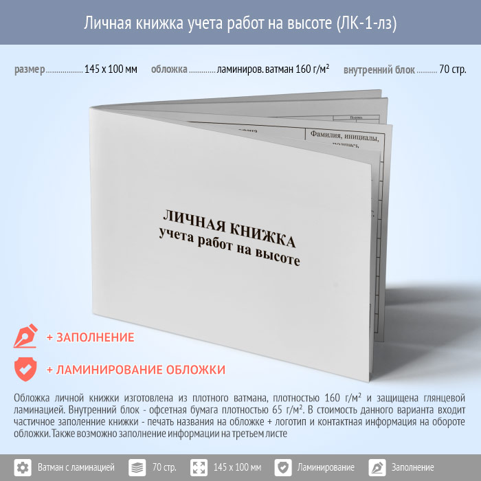 Личная книжка учета работ на высоте (с ламинированием обложки и заполнением, ЛК-1-лз) в Санкт-Петербурге купить