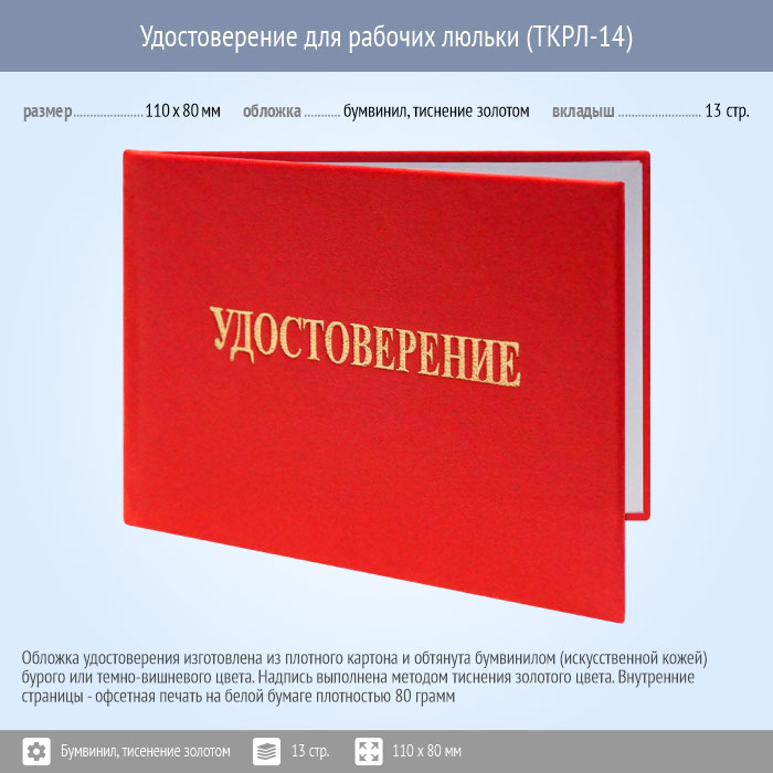 Бланк удостоверения для рабочих люльки (ТКРЛ-14) в Санкт-Петербурге купить