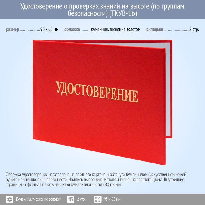 Бланк удостоверения о проверках знаний на высоте (по группам безопасности) (ТКУВ-16) в Санкт-Петербурге купить