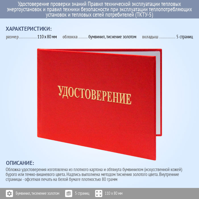 Бланк удостоверения проверки знаний Правил технической эксплуатации тепловых энергоустановок и правил техники безопасности при эксплуатации теплопотребляющих установок и тепловых сетей потребителей (ТКТУ-5) в Санкт-Петербурге купить