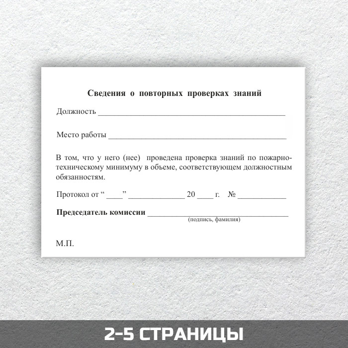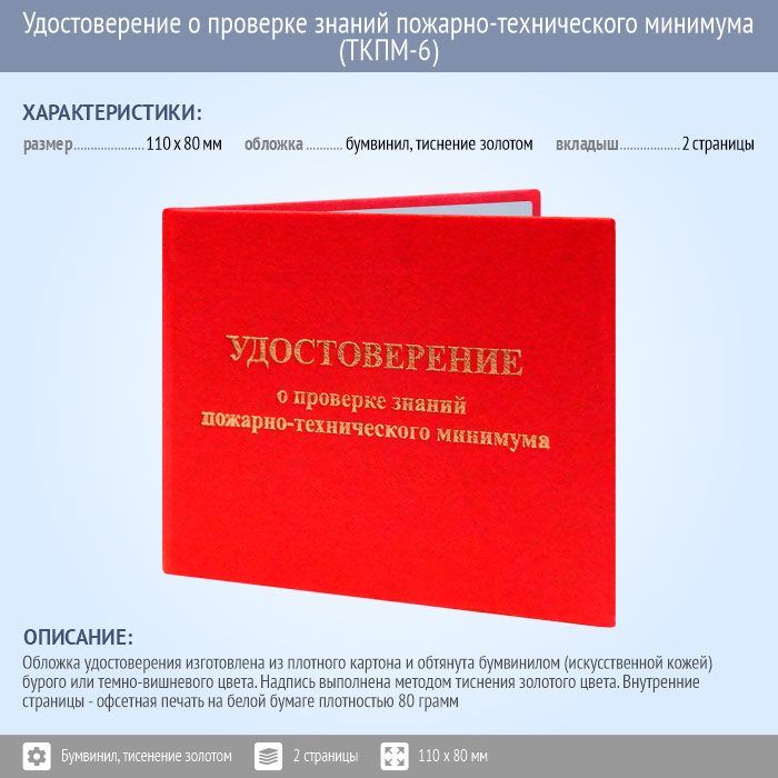 Бланк удостоверения о проверке знаний пожарно-технического минимума (ТКПМ-6) в Санкт-Петербурге купить