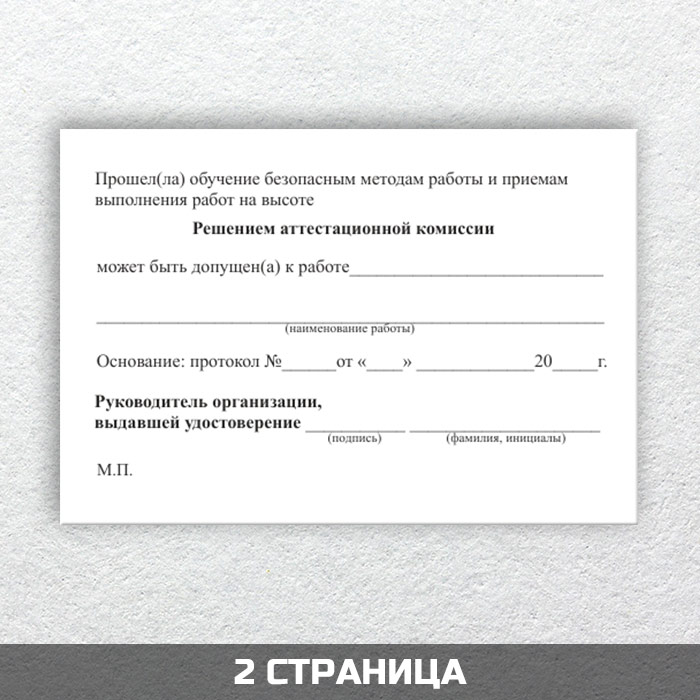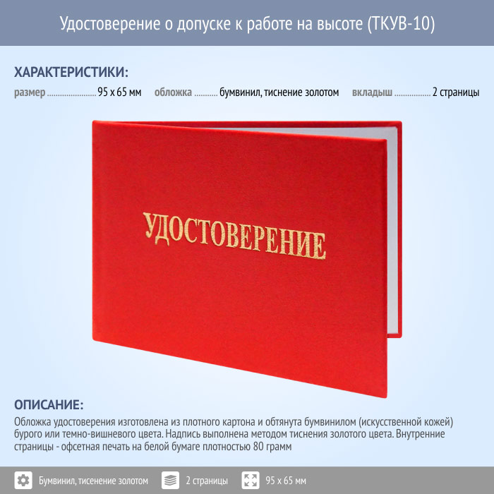 Бланк удостоверения о допуске к работе на высоте (ТКУВ-10) в Санкт-Петербурге купить