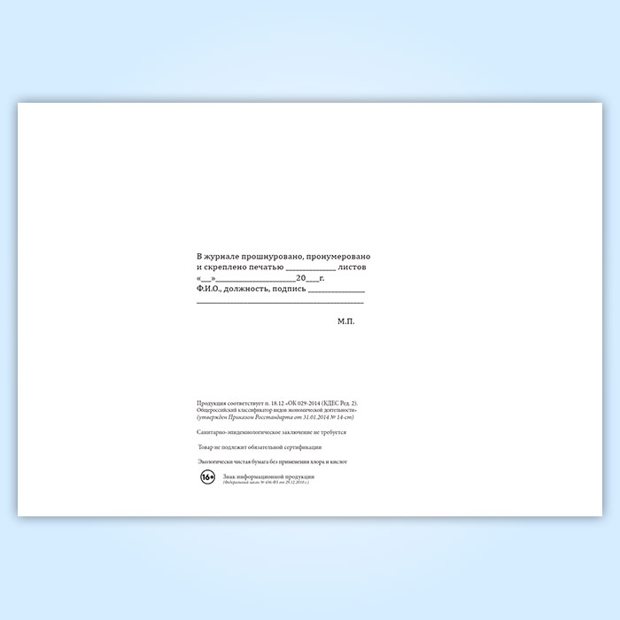 Вы получаете печатную продукцию прошнурованной и c местом для вашей печати в соответствии с действующими нормативными документами: