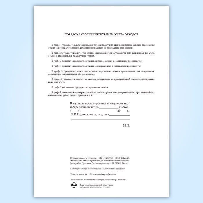 Журнал первичного учета отходов в Санкт-Петербурге купить