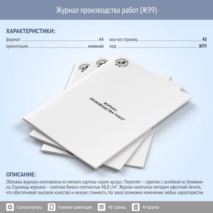 Журнал производства работ (48 стр., Ж99) в Санкт-Петербурге купить