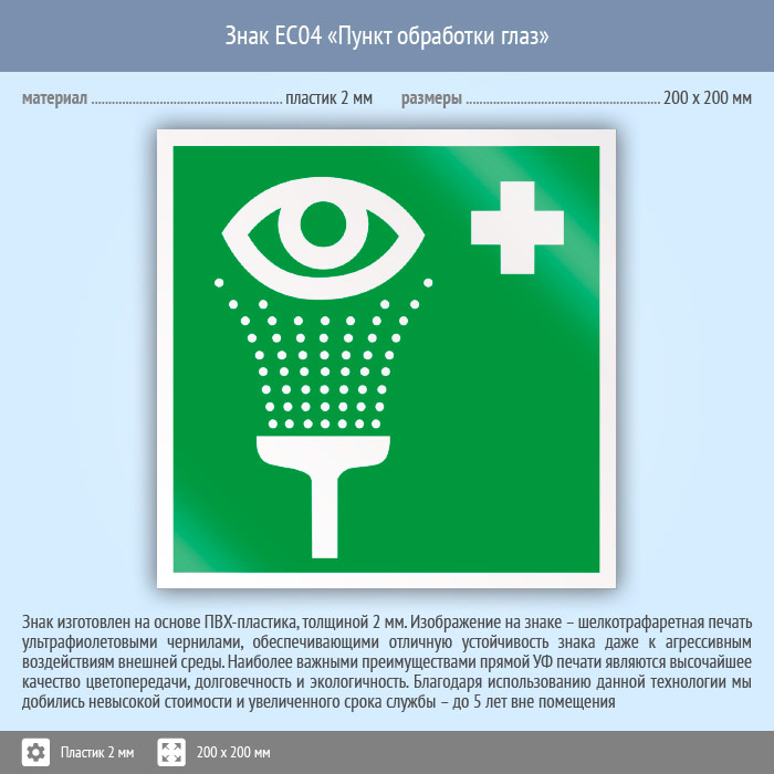 Знак EC04 «Пункт обработки глаз» (пластик, 200х200 мм) в Санкт-Петербурге купить