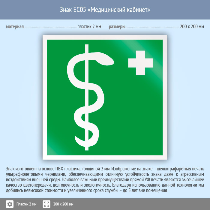 Знак EC05 «Медицинский кабинет» (пластик, 200х200 мм) в Санкт-Петербурге купить